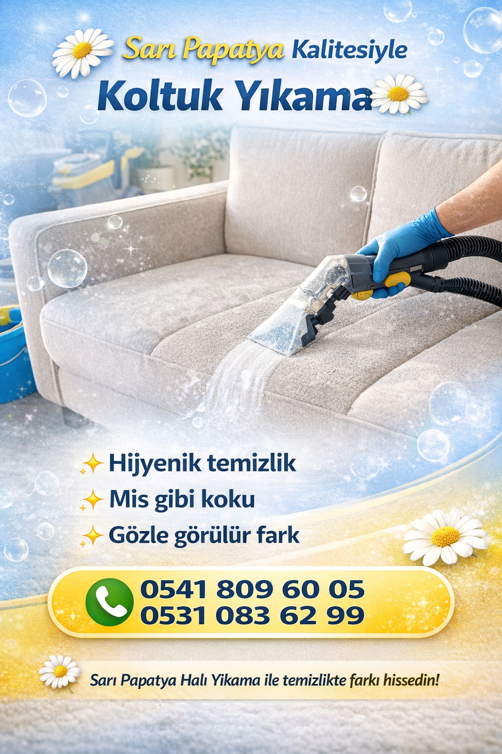 Evinizin en çok kullanılan eşyaları olan koltuklar, zamanla toz, yemek artıkları, ter, evcil hayvan tüyü ve farklı lekelerle hijyenini kaybeder. Yüzeysel temizlik bu kirleri ortadan kaldırmaz. Sarı Papatya temizlik şirketi İstanbul'da koltuk yıkama hizmeti sunuyor; modern makineler, ekolojik şampuanlar ve tecrübeli ekibimizle koltuklarınızı ilk günkü temizliğine kavuşturuyoruz.
