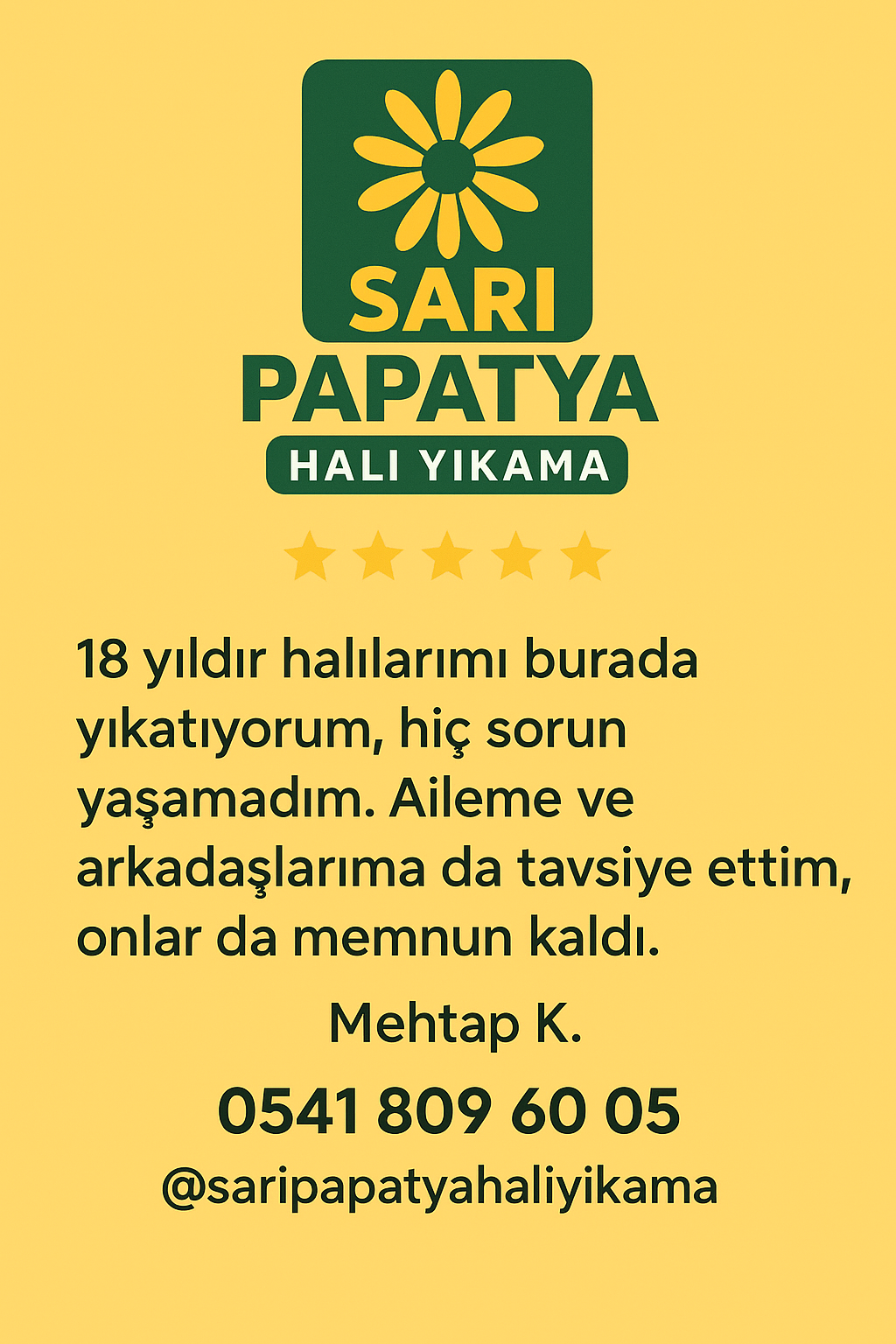 Sarıpapatya Halı Yıkama sayesinde halılarımız ilk günkü gibi tertemiz oldu, kesinlikle herkese tavsiye ederim!" - Aysun K.